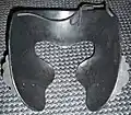 Face armour in Japan begins with the happuri, which is depicted in Heian- and Kamakura-era yamato-e paintings, and is thought to have appeared during the 10th or 11th centuries.[7] It is depicted as being worn with or without a helmet by both mounted warriors and foot retainers. By the 14th century, the hōate appears, and according to Tom Conlan,[8] this development is behind decreased facial wound statistics. However, others, such as Yamagishi Sumio, believe that the hōate was not widespread at that time,[9] as it—and the later menpō—restricted the vision of the wearer.[7] Hōate are also portrayed in art and literature of the period, most notably the Aki no yo no Nagamonogatari scroll[10] and Taiheiki. The menpō (half-mask with detachable nosepiece) and the sōmen (full face mask) are believed to have been introduced around the mid to late 15th century, and the hanbō (chinguard) in the second half of the 16th century.[7]