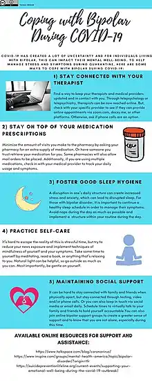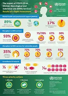 - ↑ The Lancet Infectious Diseases (2020). "The intersection of Covid-19 and Mental health". The Lancet. Infectious Diseases. 20 (11): 1217. doi:10.1016/S1473-3099(20)30797-0. PMC 7544473. PMID 33038942.