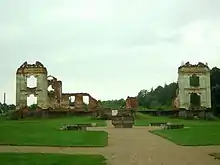 Merkinė Manor was a residential manor in Merkinė village, Šalčininkai District Municipality, Lithuania.[1][2] It was the location of the self-proclaimed Paulava Republic, established by Paweł Ksawery Brzostowski in 1769. In 1770 Brzostowski hired Italian architect Carlo Spampani to build a new manor building in Neoclassical style. The building remained intact until after World War II, when it became a part of a sovkhoz, a Soviet-era farmstead. According to art historian Vladas Drėma, the manor was destroyed when one of the sovkhoz directors set fire to it to hide the traces of his grain thievery.[3] Only ruins remained and the manor has not been rebuild since, however, the area around it has been cleaned up and turned into a minor tourist attraction, with a memorial stone to commemorate the manor and the Paulava Republic.[4]