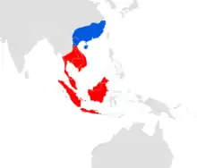 | Year round distribution in red and breeding location in blue of blue-throated bee-eaters in Southeast Asia | |