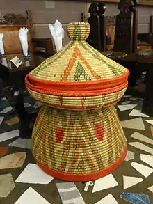 Mesob (Amharic: መሶብ) or Harar Mesob is a Harari basket used for storing injera, an Ethiopian and Eritrean flatbread.[1][2] It is widely depicted as a cultural symbol for Ethiopia and Eritrea made from locally grown and partially dyed grass and palm leaves known for strength and durability.[3][4]