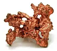 Copper is the eighth most abundant metal in the Earth's crust, is available all over the world, and is one of the few that can appear in a pure state.[7] It is not complicated to work with, and a bare hammering can be enough to transform a nugget into a bead. The eye-catching look of native copper makes it easy to recognize, and even flashier if converted into jewelry, a possible motivation for humankind to start metallurgy with it. An evolutive technological process has been described,[8] although there are authors like Javinovic,[9] who think that it is not necessary to pass through the first stages to reach the last one.