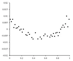 To the right is a residual plot illustrating random fluctuations about , indicating that a linear model is appropriate. is an independent, random variable.[10]