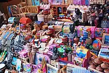 Mexican artesanía is sold to foreigners in two ways. The first is to tourists, as Mexican handmade items is part of what makes the country attractive to foreign visitors.[23] The second is through exports. Mexican artesanía is widely sold outside of Mexico, especially through the Internet.[3] However, there is no single marketing entity or corporation whose business is to export Mexican artesanía in general. Exporting is mostly done by investments in a particular crafts by particular people, rather than a large scale promotion of Mexican crafts in general.[23]