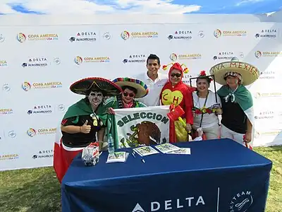 Three-time Copa América squad member and 2001 finalist Oswaldo Sánchez (middle) celebrating with fans ahead of the group match against Jamaica at the Copa América Centenario.