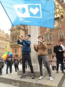 - ↑ ""Miłość nie wyklucza" demonstruje pod Sejmem i nie poddaje się. Będzie bronić związków partnerskich". naTemat.pl (in Polish). Retrieved 2022-06-25.
