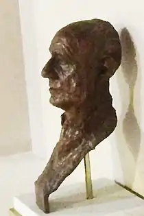 In January 1995 Hordern was invited back to his old college in Brighton, where a room was named in his honour.[186] Inside, the college had commissioned the sculptor Peter Webster to create a bronze bust of the actor which is displayed with a plaque. Hordern's last physical acting role came shortly afterwards as Lord Langland in the comedy film A Very Open Prison.[187] This was followed by two narration performances, firstly in Spode A History of Excellence,[188] and then in the five-part film Dinosaurs and Their Living Relatives.[189]