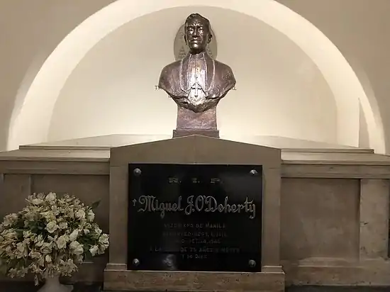 O'Doherty died on 13 October 1949, and was buried in the crypt beneath Manila Cathedral, together with past archbishops. He was the last non-Filipino and the only Irishman to be ordinary of the archdiocese, ending a long line of Spanish and American prelates.