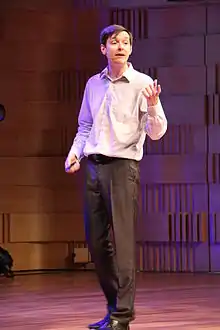 In October 2011, the Merseyside Skeptics Society (represented by Hall and Marshall), Chris French and Simon Singh set up a "Halloween Challenge" to Sally Morgan to have her alleged psychic abilities tested, to demonstrate that her claims regarding talking to the dead are true, otherwise she might, knowingly or unknowingly, be taking advantage of people's grief.[16] Morgan did not turn up at the press conference, but threatened to sue the skeptics for defamation through her lawyers instead.[17] Nevertheless, the MSS decided to make the Halloween Challenge an annual event and invited any psychic in the UK to take part.[18] When two psychics failed an experiment in October 2012, Marshall remarked: "While the result of our experiment doesn't disprove psychic ability, the fact that our mediums couldn't pass what they felt was a very fair and simple test does seem to suggest claims that these abilities exist aren't based in reality."[19] At the Australian Skeptics National Convention 2014 in Sydney, Marsh lectured about pseudoscience and the channelling of spirits.[20]