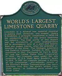 - ↑ Usitalo, Kath. "World's Larges Limeston Quarry is Pure Michigan". Great Lakes Gazette. Retrieved December 18, 2022.