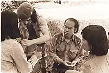 Preparing to record the 1976 Wendy Yoshimura documentary, "Wendy...uh...What's Her Name" in Fresno, California,1976.