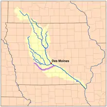 ![]() Map of the Des Moines River watershed with the Middle River highlighted | |
