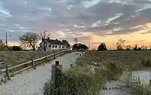 Small communities of the Lenape Navesink tribe were common throughout the area when the first known European landing in what would become Middletown Township occurred in 1609. Sea captain and explorer Henry Hudson, in search of the mythical Northwest Passage in the service of the Dutch West India Company, anchored along the shores of Sandy Hook Bay in 1609, describing the area "a very good land to fall in with and a pleasant land to see."[41] While a patroonship was granted by the company in 1651 the land wasn't officially settled. Today's Shoal Harbor Museum and Old Spy House includes portions of a house constructed by Thomas Whitlock, one of the area's first European settlers (and a Reformed Baptist at Middletown[42]) who arrived here as early as 1664,[43] around the time of the English takeover of New Netherland as a prelude of the Second Anglo-Dutch War.[41] Long-standing tradition had Penelope Stout, one of the first settlers, hiding in a tree from hostile Native Americans.[44]