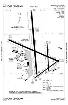 - ↑ "Midland International Airport". Archived from the original on January 28, 2013. Retrieved October 8, 2015. Midland International Airport website