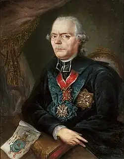 Mikalojus Tiškevičius (1721 – 6 December 1796 in Vilnius) was a boyar, nobleman, Graf of the Leliwa coat of arms, canon, state and military figure of the Grand Duchy of Lithuania and the Polish–Lithuanian Commonwealth.[1][2] He owned the Liubavas Manor in Liubavas, in the northern part of Vilnius.[2][3][4]