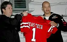 Leach, along with players Graham Harrell and Michael Crabtree were featured on the cover of the 2008 edition of Dave Campbell's Texas Football.[34] The magazine predicted that the 2008 Red Raider football team would be the best in Texas and would challenge for the Big 12 South title.[35] Following a 9–0 beginning to the season, including a win over the undefeated #1 Texas Longhorns, Texas Tech Athletic Director Gerald Myers announced that the university would renegotiate Leach's contract following the conclusion of the football regular season and give him an extension.[36]