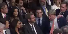 During the 14th ballot for Speaker, Rogers lunged[27][28][29] at Representative Matt Gaetz after Gaetz spoke with McCarthy. Representative Richard Hudson then had to physically restrain Rogers.[27] The Associated Press reported that Rogers "charged" at Gaetz[30][31] before Hudson pulled Rogers back by the shoulder, then the face.[32] According to The New York Times, Gaetz was seeking a subcommittee chairmanship in the House Armed Services Committee, of which Rogers was in line to become chair.[28] Multiple representatives criticized Rogers after the confrontation, including Marjorie Taylor Greene, who said it was "out of line" and expected consequences for Rogers,[33] and Tim Burchett, who compared Rogers's actions to being under the influence of alcohol on the House floor, saying "people shouldn't be drinking, especially when you're a redneck, on the House floor".[34] Burchett later retracted his comments about Rogers, saying that they were made out of frustration and that "we're all friends".[35]