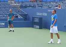 At the Miami Masters, Youzhny was 4–5 down with Spain's Nicolás Almagro serving in the final set, he hit a relatively easy return into the net.[39] He gestured angrily towards his own temple, and then hit his head strongly with the edge of frame of his tennis racket three times, drawing blood.[39] Despite this—and after receiving medical attention—he won the next seven points, taking the tiebreaker and also the match.[39] In his next match, he lost to Serbia's Janko Tipsarević.[36] His poor form continued into the clay season, but Youzhny, as the 15th-seed, managed to reach the third round of the French Open, losing to world number twenty-three Fernando Verdasco from Spain in four sets.[36] At Wimbledon Youzhny was seeded 17th, and reached the fourth round by defeating 16th-seed Radek Štěpánek in a five-setter in the third round.[36] He lost to 2nd-seed and eventual champion Rafael Nadal in the fourth round.[36] At his next tournament, the Allianz Suisse Open Gstaad in Switzerland, Youzhny reached his last quarterfinals of the season and lost to Spain's Guillermo García López.[36] At the Summer Olympics in Beijing, China, Youzhny lost in the third round to world number three Novak Djokovic.[36] Youzhny withdrew from the US Open due to viral illness, making his first withdrawal from a grand slam after appearing in 23 in a row.[15] Youzhny continued his poor results, reaching the first and second round in all the remaining tournaments, with one exception in Tokyo, Japan.[36] He ended the year with a 28–22 win–loss record,[36] and with an end of year ranking of 33.[6]