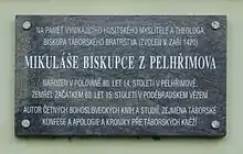 Mikuláš of Pelhřimov, also called Mikuláš Biskupec (c. 1385 – c. 1459) was a Czech Hussite priest, bachelor of liberal arts, from 1420 the head ("bishop") of the independent Taborite church. In the theological polemics against the Prague masters he was the main spokesman for the Taborites and their most important theologist. His treatise Confessio Taboritarum (Confession and Defense of Tábor) was significant in the international Reformation literature and is known from 16th and early 17th century prints.[1]