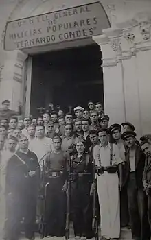 The Spanish Civil War started on 17 July 1936 with a coup d'état.[1][22] The military revolt that started the civil war did not immediately succeed in part because of women who took part in spontaneous uprisings.[1][22]