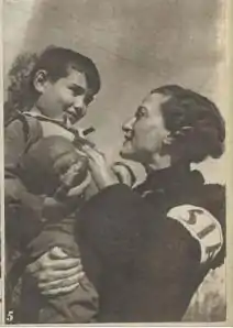 Most women on the front served in militias aligned with some political group.  A very small number served as members of the regular Republican army.  Members included Esperanza Rodríguez.[2] In the first few months of the war, the Fifth Regiment had the largest contingent of milicianas among all militias.[6] Most of the women serving in front line roles had their positions defined by the communist, anarchist or POUM leadership.  Most of these gave women equal roles when it came to combat, and providing the same military contribution.[2] In comparison to men, women on the front were often more expected to take care of injured comrades. This sometimes put them in more harms way, as some women militia members were shot while tending to injured comrades in battle. Women who had to deal with this situation included  Josefa Rionda. Captains might also divert women on the battlefield to hospitals, where they expected them to work alongside nurses.[2] In some cases, milicianas were told by column leaders that they were only allowed to remain on the front in support roles for men, by doing working as nurses or teaching largely illiterate militiamen to read. A number of these women left those columns, seeking other units where they could serve in combat.[6] Among the women serving in the international brigades, most worked as nurses, pharmacists or doctors.  Some Jewish, Polish and American women did go to Spain, and did serve in combat.  They were actively discouraged from doing so by anarchists, and outright banned from doing so by communists.[29]