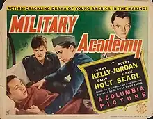 Military Academy is an American drama film directed by D. Ross Lederman, scripted by Karl Brown and David Silverstein from a story by Richard English and released as a low-budget programmer by Columbia Pictures on August 6, 1940.[1] It is one of numerous military-school or patriotic-adventure-themed, quickly-produced second features for a primarily juvenile audience, which every studio rushed before the cameras following the September 1939 outbreak of war in Europe and, subsequently, the Selective Training and Service Act of 1940, passed by Congress on September 14 and signed by President Franklin Roosevelt on September 16.