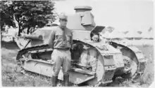 In February 1918, he was transferred to Camp Meade, Maryland, where he was assigned command of the 301st Heavy Tank Battalion. By the beginning of 1918, the United States Army did not have a single operational tank, but the battalion planned to use British-provided Mark VI tanks after arriving in Europe. The 301st was initially scheduled to be deployed to Europe in early 1918, but in March 1918 the tank corps was established as an independent branch of the army, and Eisenhower's unit was assigned for further training at Camp Colt.[9] After months of rudimentary training, the first tank, a Renault FT, arrived in June 1918. In September, the "Spanish flu" epidemic hit the camp, ultimately killing 175 of the roughly 10,000 men under his command.[10] In October, Eisenhower was promoted to the rank of lieutenant colonel, and two weeks later he received orders to deploy to Europe. Shortly before the deployment, the war ended with the signing of the Armistice of 11 November 1918.[11] Though Eisenhower and his tank crews never saw combat, he displayed excellent organizational skills, as well as an ability to accurately assess junior officers' strengths and make optimal placements of personnel.[12] Despite his success as an organizer and trainer, during World War II rivals who had combat experience often sought to denigrate Eisenhower for his previous lack of combat experience.[13]