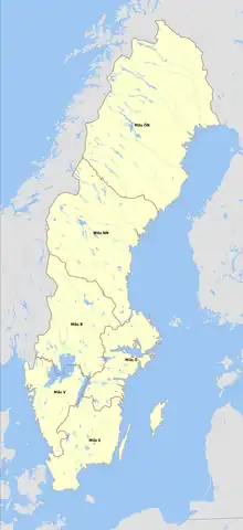 | Milo M | Middle Military District | Mellersta militärområdet | Strängnäs | 1991–2000 | Formed by merging of Milo B and Milo Ö. |