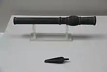 Although the Xanadu Gun is the most precisely dated gun from the 13th century, other extant samples with approximate dating likely predate it. One such candidate is the Heilongjiang hand cannon, discovered in 1970 and named after the province of its discovery, Heilongjiang in northeastern China.[36][37] It is small and light like the Xanadu gun, weighing only 3.5 kilograms, 34 cm (Needham says 35 cm), and a bore of approximately 2.5 cm.[38] Based on contextual evidence, historians believe it was used by Yuan forces against a rebellion by Mongol prince Nayan in 1287. The History of Yuan states that Jurchen commander Li Ting led troops armed with hand cannons into battle against Nayan.[39] It reports that the cannons of Li Ting's soldiers "caused great damage" but also created "such confusion that the enemy soldiers attacked and killed each other."[40] The hand cannons were used again in the beginning of 1288. Li Ting's "gun-soldiers" or chongzu (銃卒) were able to carry the hand cannons "on their backs". The passage on the 1288 battle is also the first to coin the name chong (銃) with the metal radical jin (金) for metal-barrel firearms. Chong was used instead of the earlier and more ambiguous term huo tong (fire tube; 火筒), which may refer to the tubes of fire lances, proto-cannons, or signal flares.[41]