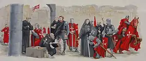 - ↑ Woodhouse, Frederick Charles (1879). The military religious orders of the Middle Ages: the Hospitallers, the Templars, the Teutonic knights, and others. With an appendix of other orders of knighthood: legendary, honorary, and modern. New York: Society for Promoting Christian Knowledge. p. 338.