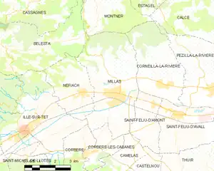 Millas is located in the canton of La Vallée de la Têt and in the arrondissement of Perpignan.