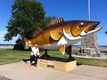Fishing on Mille Lacs Lake is promoted by a giant walleye statue. It is located off of U.S. Route 169 in Garrison.