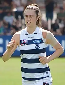 Brown was drafted by Geelong with the club's first pick and the 11th overall in the 2019 AFL Women's draft.[1] She is the daughter of 84-game Geelong AFL player Paul Brown and was selected under the father-daughter rule.[2] Brown made her debut against Fremantle at Fremantle Oval in the opening round of the 2020 season.[3] On 27 July 2021, Geelong announced that Brown will be inactive for the upcoming 2021-22 AFLW Season.[4] In June 2022, Brown was traded to Western Bulldogs.[5]