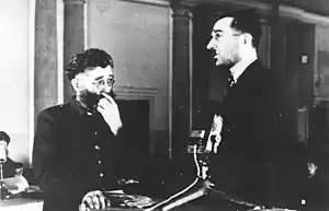 ![]() Miloš Glišić (right) and Draža Mihailović at Belgrade Process, 1946 | |