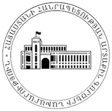 The Ministry of Foreign Affairs of Armenia (MFA) (Armenian: Հայաստանի արտաքին գործերի նախարարություն, romanized: Hayastani artak’in gortseri nakhararut’yun) is a state body of executive power, which elaborates and implements the foreign policy of the Government of Armenia and organizes and manages diplomatic services.[1] The MFA acts accordingly to the Constitution and legislation of Armenia.[1] The Ministry of Foreign Affairs coordinates the activities of the executive power bodies of the Republic in the international arena.[1] Since 2021, Ararat Mirzoyan has been the Minister of Foreign Affairs of Armenia.