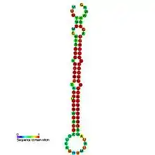 The miR-92 microRNAs are short single stranded non-protein coding RNA fragments initially discovered incorporated into an RNP complex with a proposed role of processing RNA molecules and further RNP assembly. Mir-92 has been mapped to the human genome as part of a larger cluster at chromosome 13q31.3,[1] where it is 22 nucleotides in length but exists in the genome as part of a longer precursor sequence. There is an exact replica of the mir-92 precursor on the X chromosome.[2] MicroRNAs are endogenous triggers of the RNAi pathway which involves several ribonucleic proteins (RNPs) dedicated to repressing mRNA molecules via translation inhibition and/or induction of mRNA cleavage.[2] miRNAs are themselves matured from their long RNA precursors by ribonucleic proteins as part of a 2 step biogenesis mechanism involving RNA polymerase 2.[3]