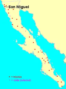 Mission San Miguel (Spanish: Misión San Miguel Arcángel de la Frontera) was a Spanish mission established on 28 March 1787 by the Dominican missionary Luis Sales among the Kumeyaay people of northwestern Baja California, Mexico. The ruins of the mission are located in present-day Ejido La Misión, Baja California in the municipio of Ensenada. The mission ruins are behind the local school, on the north side of Highway 1.