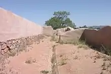 The buildings were surrounded by a wall with surveillance towers. There was also an irrigation system consisting of a dam and stone-lined ditches for watering the fields.