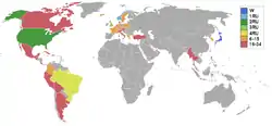 Christine Matias of the Philippines was set to compete at Miss Universe, but was barred by her university, the Philippine Women's University, as they do not allow their students to wear a swimsuit in front of the public.[4][5] Aida Kadamani was supposed to represent the United Arab Republic at Miss Universe, but withdrew after refusing to wear a swimsuit in front of the judges.[6] She was then replaced by Nawal Ramli, but she also did not push through with the competition as the pageant organizers failed to answer her queries whether she could substitute Kadamani.[6] Indonesia was supposed to compete for the first time, but was not able to send a candidate due to protests in Jakarta against the creation of Miss Indonesia.[7] Other countries who would not sanction their people to appear in swimsuits according to Oscar Reinhardt, then-executive producer of Miss Universe Inc., include Ireland, Portugal, and Spain.[5] Spain and Portugal would send their first representatives in the following year.