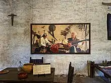 Four years later, the Mission property was auctioned off under questionable circumstances for $710 worth of tallow and hides (equivalent to $15,000 in 2004 dollars) to Englishman John (Don Juan) Forster (Governor Pío Pico's brother-in-law, whose family would take up residence in the friars' quarters for the next twenty years) and his partner James McKinley.[83] More families would subsequently take up residence in other portions of the Mission buildings. José María Zalvidea left San Juan Capistrano on or about November 25, 1842, when Mission San Luis Rey de Francia's Ibarra died, leaving the Mission without a resident priest for the first time (Zalvidea had been the Mission's sole priest ever since the death of Josef Barona in 1831.)[84] The first secular priest to take charge of the mission, Reverend José Maria Rosáles, arrived on October 8, 1843;[85] Vicente Pascual Oliva, the last resident missionary, died on January 2, 1848.[86]