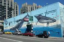 The theatre is located in the northwest part of the Tenderloin District, at the corner of Polk and O'Farrell street, a few doors down from the Great American Music Hall. The entire exterior west and south faces of the theater are covered with two large murals. The west wall depicts a fantasy aquatic scene with flying fish, turtles and whales with a silhouette of the San Francisco Bay in the background, and on the south wall is an underwater scene featuring a life-sized pod of whales and dolphins. These murals were painted in 1977 (Lou Silva with Ed Monroe, Daniel Burgevin, Todd Stanton, and Gary William Graham), 1983 (Lou Silva-solo), 1990 by Lou Silva[79] with the assistance of Joanne Maxwell Wittenbrook, Ed Monroe, Mark Nathan Clark, and Juan "Blackwolf" Karlos, and 2011 by the Academy of Art University. Notable visitors, while the murals were in progress, included: Melvin Belli, Marilyn Chambers, Paul Kantner, Toshiro Mifune, Huey P. Newton, Hunter S. Thompson, and Edy Williams. The murals were sponsored in their entirety by Jim and Artie Mitchell.