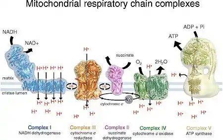 - 1 2 3 4 5 Kühlbrandt W (October 2015). "Structure and function of mitochondrial membrane protein complexes". BMC Biology. 13 (1): 89. doi:10.1186/s12915-015-0201-x. PMC 4625866. PMID 26515107.