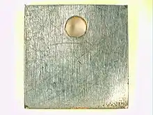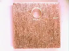 Nominally 1 cm square copper coupon prepared per ASTM B810-01a(2017) Cleaning Method I