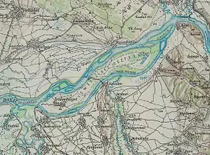 Warm Mlava (Topla Mlava) is a canal that connects Mlava (Wild Mlava) with the Danube east of the village of Selo Kostolac and west of the Kostolac B TPP. Its length is 4.3 km from the brush to the mouth, and from the yellow bridge (Viminacijum Bridge) to the intersection of 6.1 km. Its characteristics are warm water that comes out of the brush because of which there are plenty of fish and its biggest resident is pike and carp. The width is about 2 to 5 normal Mlava basins (70–175 m) and the depth is up to 4 m.