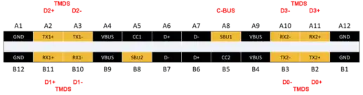 Depending on the bandwidth requirement, the standard makes use of a variable number of USB Type-C's four SuperSpeed differential pairs to carry each TMDS lane: a single lane is required for resolutions up to 4K/60 Hz, two lanes for 4K/120 Hz, and all four lanes for 8K/60 Hz.[24] The MHL eCBUS signal is sent over a side-band (SBU) pin on the USB Type-C connector. When one or two lanes are used, USB 3.1 data transfer is supported.