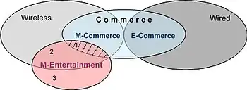 Segment 1 consists of intersection between mobile commerce and mobile entertainment, sitting on top of wireless telecommunication networks. In other words, mobile entertainment services in segment 1 must be a subset of mobile commerce, which involves exchanges of monetary value and interaction with service providers.