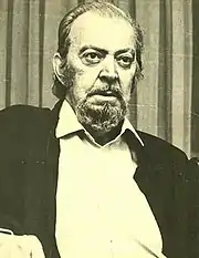 Yiannis Ritsos was inordinately prolific and excelled in several poetic forms.[118] More than 100 volumes were published in his lifetime,[171] but his best-known are Epitaphios (1936), Romiosini (1954), and Moonlight Sonata (1956). Regularly persecuted for his political beliefs, Ritsos is seen as an ideal combination of the qualities of the engaged citizen committed to his public duty, and the expression of the naturally restless and "libertarian" artist.[172] His figure has been extremely influential, permeating the post-Civil War generation of leftist poets.[173]