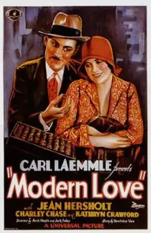 Modern Love is a 1929 American comedy film directed by Arch Heath and written by Albert DeMond and Beatrice Van. The film stars Charley Chase, Kathryn Crawford, Jean Hersholt, Edward Martindel, Anita Garvin and Betty Montgomery. The film was released on July 21, 1929, by Universal Pictures.[1][2][3]