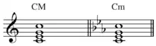 Key signature change example: C major to C minor.