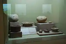 Painted ceramics with decorative features such as shell impressions, and use of reflective hematite; 1700-1300 BCE, from Paso de la Amada, Mazatán. Regional Museum of Anthropology and History of Chiapas, Tuxtla Gutierrez